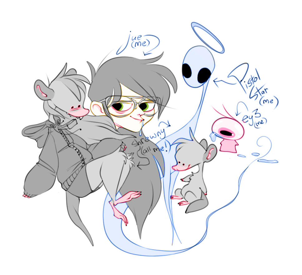 pets: 3 cats, 3 ferrets, and a dog (all aliens)